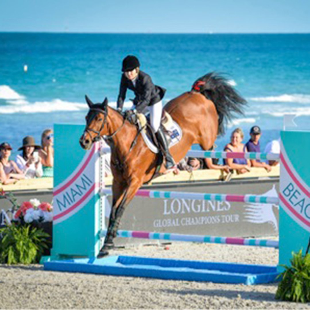 Wellington equestrian Ariana Rockefeller will be among the hopefuls to compete in the Longines Global Champions Tour on the weekend of April 18. Rather than show jumping’s usual bucolic venues, the chic event takes place right on the beach between the Setai and W hotels. Longines is the Fédération Equestre Internationale’s official timekeeper and title sponsor. global champions tour. Longines